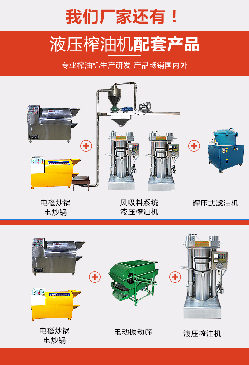 1、可實現(xiàn)芝麻、花生、油葵、杏仁、核桃、松籽、紫蘇等高含量油作物的壓榨,對一些保健油類可實現(xiàn)純冷榨工藝。配用鉆孔料桶可實現(xiàn)對油渣的處理。