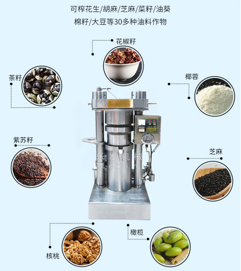 1、可實(shí)現(xiàn)芝麻、花生、油葵、杏仁、核桃、松籽、紫蘇等高含量油作物的壓榨,對一些保健油類可實(shí)現(xiàn)純冷榨工藝。配用鉆孔料桶可實(shí)現(xiàn)對油渣的處理。